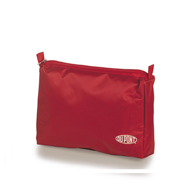 Necessaire feita em nylon, fechamento com zíper e logo frontal.